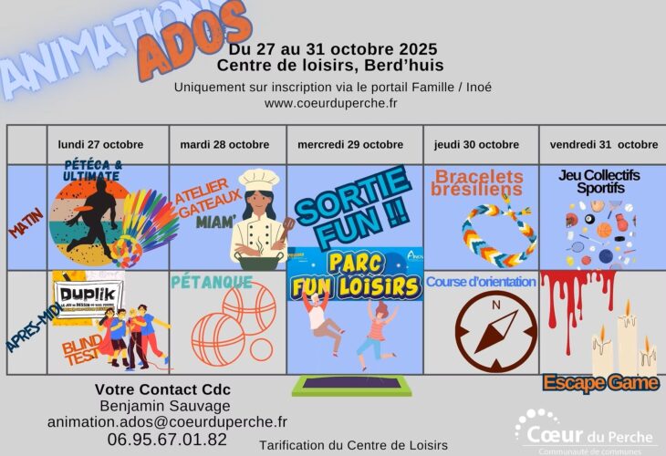 Animations du Club Ados pour la semaine du 27 au 31 octobre 2025